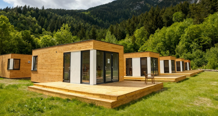 Holiday‑resort homes combine efficient design, durable construction, and turnkey convenience to create dependable accommodation for leisure parks, rental sites, and seasonal destinations. Their layouts typically include a bright living area with kitchenette, one or two bedrooms, and a fully equipped bathroom, ensuring guests enjoy a comfortable, self‑contained stay. Built on robust frames - steel chassis and timber structures - with mineral‑wool insulation in the roof, floor, and walls, they maintain a pleasant indoor climate throughout the season while remaining easy to position on a variety of plots. Optional upgrades such as heating systems, premium finishes, terraces, and full furnishing packages allow resorts to tailor each unit to their brand and guest expectations. The result is a flexible, attractive, and cost‑effective accommodation solution that elevates any holiday resort.